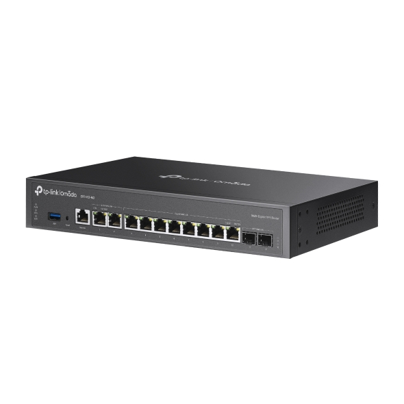 Omada Multi-Gigabit VPN Router PORT: 2× 2.5G WAN/LAN RJ45 Port, 2× Gigabit SFP WAN/LAN Port, 8× Gigabit WAN/LAN RJ45 Ports, 1× USB 3.0 port SPEC: 1U 13-inch Rack-mountable Steel Case FEATURE: Integration with Omada SDN Controller, Support SSL VPN, OpenVPN and IPsec/ PPTP/ L2TP/ L2TP over IPSec VPN, 1000000 Concurrent Sessions, Load Balance, Link Backup, 4G LTE Backup with USB Dongle, Policy-based Firewall, Static Routing, Policy Routing, Multi-net DHCP, Guest Portal, VLAN, Support RJ45/SFP Module