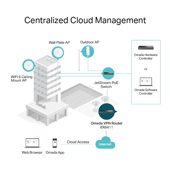 Omada VPN Router with 10G Ports PORT: 1× 10G SFP+ WAN Port, 1× 10G SFP+ WAN/LAN Port,1× Gigabit SFP WAN/LAN Port, 8× Gigabit RJ45 WAN/LAN Ports, 2× USB3.0 port FEATURE: Integration with Omada SDN Controller, Support SSL VPN, OpenVPN and IPsec/ PPTP/ L2TP/ L2TP over IPSec VPN, 1500000 Concurrent Sessions, Dual Power Supply, Load Balance, Link Backup, 4G LTE Backup with USB Dongle, Policy-based Firewall, Static Routing, Policy Routing, Multi-net DHCP, Guest Portal, VLAN, Support RJ45 SFP+/SFP Module
